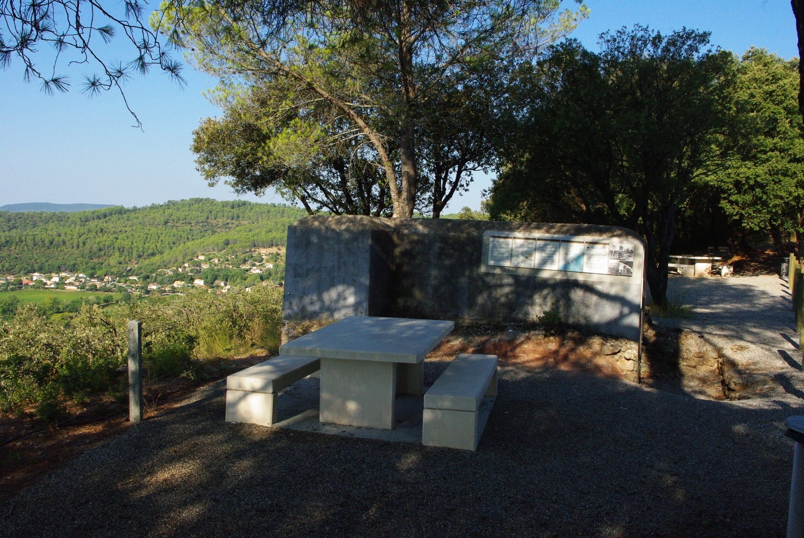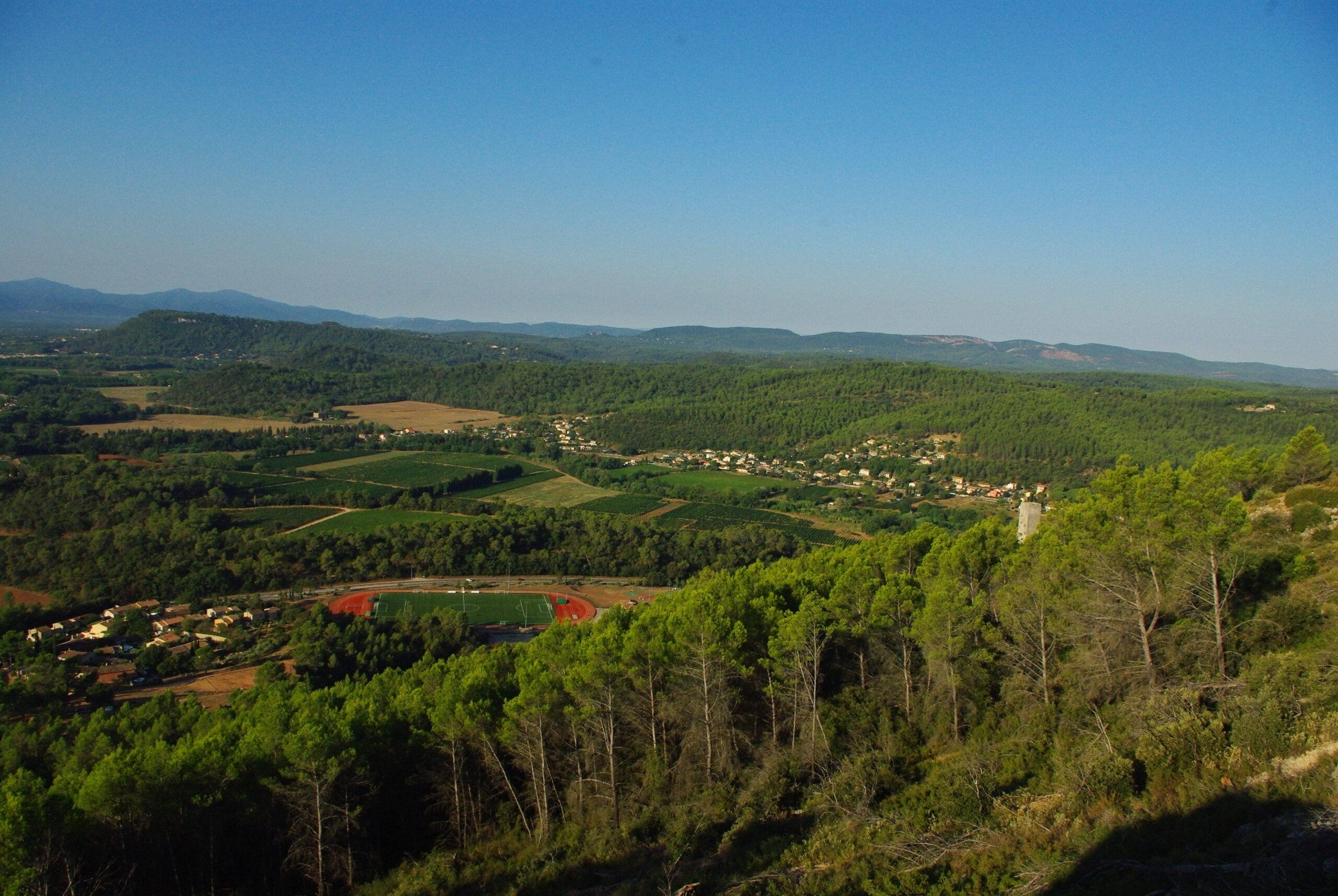 Située sur le piton du "Gros Rocher" à 260 mètres d'altitude, elle vous offre une vue inoubliable sur la plaine de l'Argens, les Maures, le majestueux Rocher de Roquebrune, l'Estérel et les Pré-Alpes.
