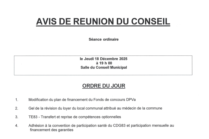 12 décembre 2025 Conseil municipal‚ Vie Communale Conseil municipal le jeudi 18 décembre 2025 Précédente TARADEAU FÊTE NOËL – Concert le 19 décembre et Calendes le 24 décembre