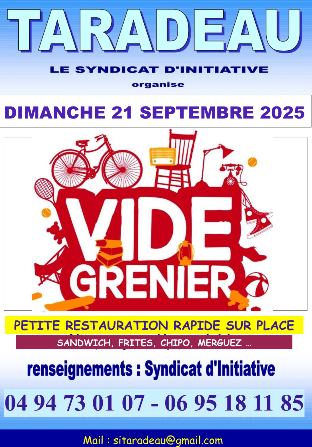 20 septembre 2025 Evenements Vide grenier ce dimanche 21 septembre Précédente Sports et Loisirs Taradéens Prochaine Loto des Randos du Coeur le 5 octobre